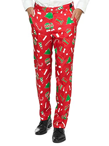 OFFSTREAM Abito Natalizio Include Giacca, Pantaloni e Cravatta, L, Rosso
