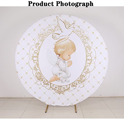 OFILA 2x2m Rotondo Baby Shower Fondali Angelo Bambina Battesimo Fondali Mi Primera Comunión Sfondi Festa Dio Benedica Comunione Battesimo Sfondi Photo Booth