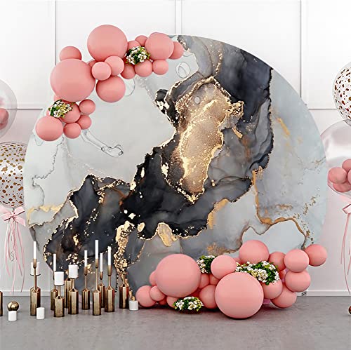 OFILA 2x2m Rotondo Marmo Sfondo Nero Oro Marmo Texture Sfondo Astratto Marmo Fotografia Sfondo Festa di Compleanno Sfondo Torta Nuziale Tavolo Photo Booth