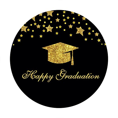 OFILA 2x2m Sfondo di laurea felice Congratulazioni Fondale fotografico di laurea rotondo Sfondo di festa di laurea Sfondo nero e oro con berretto da scapolo Sfondo ritratto Photo Booth