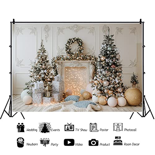 OFILA 3x2m Buon Natale Fotografia Sfondo Decorazione Festa di Natale Alberi di Natale Camino Palle di Natale Palloncini Pavimento in Legno Bambini Sessione Foto di Natale Sfondo Celebrazione