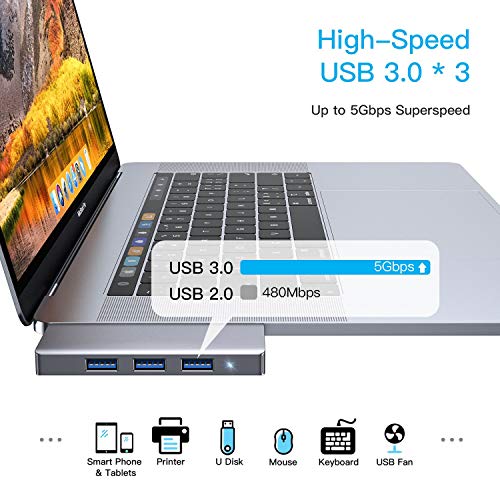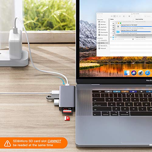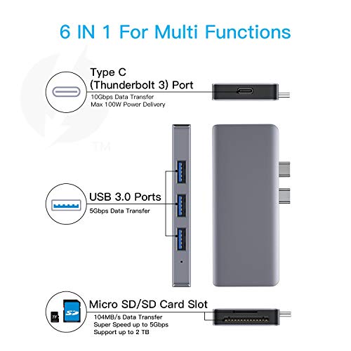 [6 IN 1 Macbook Hub]: USB C Hub Macbook expand your devices with USB-C charging port (Thunderbolt 3), 1* SD, 1* Micro SD card reader, 3* USB 3.0, you can connect your devices to multiple devices, meets your daily needs.