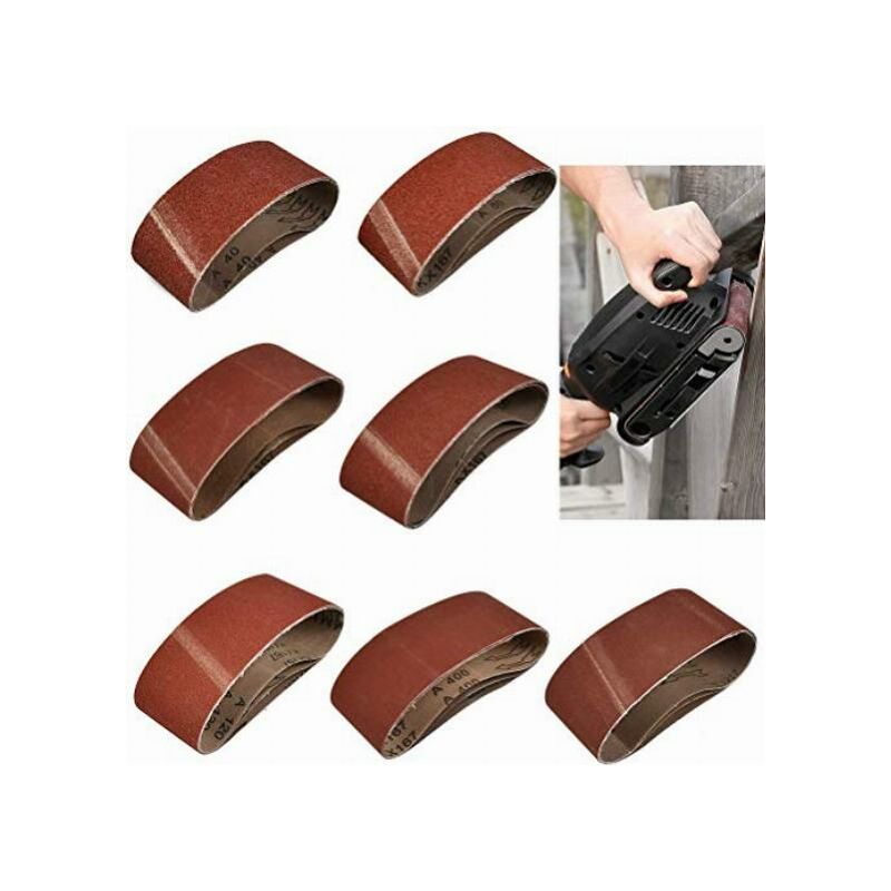 Contiene 20 nastri abrasivi - Adatto a tutti i tipi di levigatrice a nastro per levigatura ad alta potenza sulla superficie levigante. Questi nastri abrasivi per lucidare i livelli di levigatura di superfici in legno e metallo e per la pulizia e l'affilatura.Il collegamento del nastro durevole e il nastro lungo più preciso e pulito senza residui di colla per una migliore qualità della superficie, la levigatura di grandi superfici è ora più facile. Specifiche del prodotto: Materiale: allumina + giada acciaio marrone Dimensioni: 75 x 457 mm Grano: 40/60/80/120/150/240/400 Nella confezione: 2 x grana 40 3 x 60 grana 3 x 80 grana 3 x grana 120 3 x grana 150 3 x 240 grana 3 x 400 grana