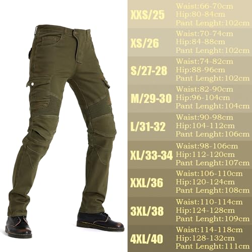 OFzimTo Pantaloni Moto Uomo, Elastico Jeans, Abbigliamento Biker E MTB, Vari Colori Disponibili, Adatto per Inverno E Estate, 4X Equipaggiamento di Protezione (ArmyGreen,XL)