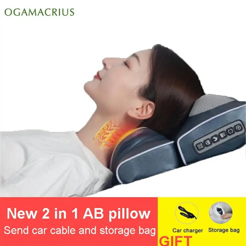 OGAMACRIUS New 2 in 1 Massage Pillow Fits Body Massage Pillow Rechargeable Pain Relief Relaxing Neck Massager Free Storage Bag