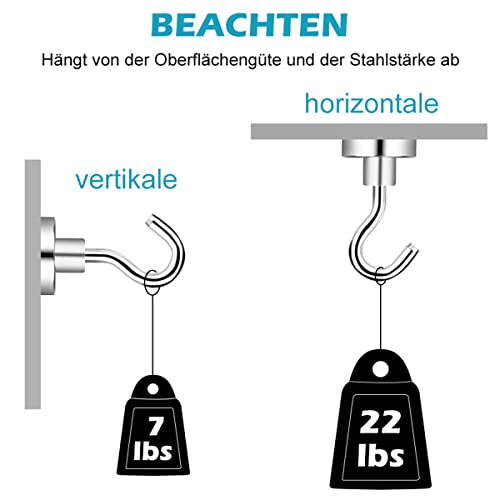 Extra forte: il diametro è di 16 mm. I ganci magnetici OGORI Neodym sono abbastanza piccoli, ma utili e non occupano troppo spazio per una presa forte. Questi ganci magnetici portano un peso fino a 3,3 kg se montati orizzontalmente (ad esempio su una parete) o fino a 10 kg se utilizzati in direzione verticale. Contenuto della confezione: 12 ganci magnetici + 12 magneti con occhielli.