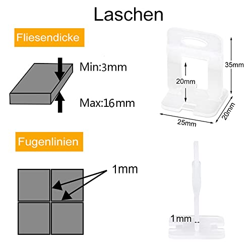 OGORI Linguette da 1 mm, 200 pezzi, larghezza fughe, per piastrelle, sistema di livellamento