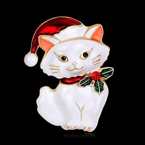 Ogquaton - Spilla a Forma di Gatto, da Bambina, Motivo Natalizio, Smaltata, Robusta e conveniente, Colore: Bianco