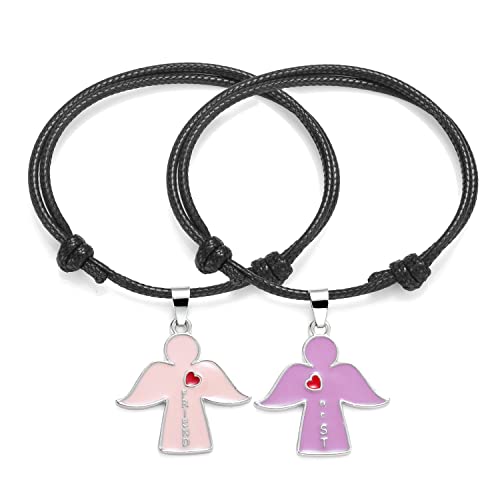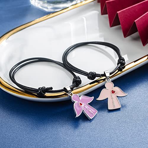 Ohaoduo - Bracciale da donna con angelo custode, 2 pezzi, con cordino regolabile, fatto a mano, corda intrecciata, bracciale dell'amicizia
