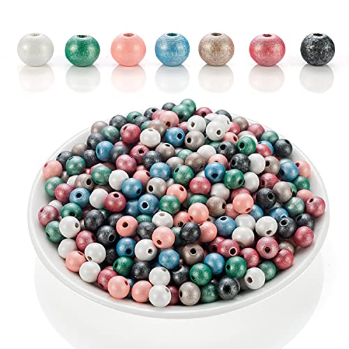 Ohaoduo - Perline di legno colorate da infilare, 500 pezzi, perline di legno colorate, 10 mm, rotonde, perline di legno, colori misti, con foro, per braccialetti fai da te, gioielli fai da te