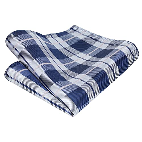 Ohlimuc Cravatte per uomo, Cravatta e Tasca Quadrato, Cravatte Uomo per Matrimoni e Affari, Cravatta Tartan, Cravatta a Pois, 13-Blu Grigio, Taglia unica