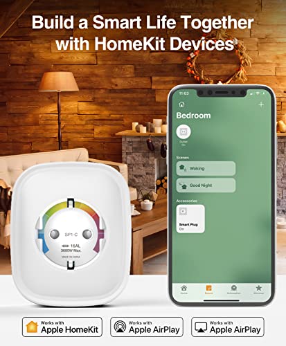 【Controllo vocale】 è possibile controllare la presa WiFi tramite Siri o un altro Apple HomeKit (iOS 13 o superiore). "Hey Siri, scopri la TV". Spegnere o accendere i dispositivi elettrici tramite la funzione vocale della presa smart. Non è necessario scaricare app aggiuntive (incluse). Basta utilizzare HomeKit per controllare la presa. Plug smart che rende la vita più facile e comoda. Buon comfort per voi e la vostra famiglia