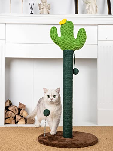 OHMO Tiragraffi per gatti adulti (Cactus, 85 cm di altezza), Albero Tiragraffi Gatto, Tiragraffi per gatti grandi e piccoli con palline,Corda di sisal naturale avvolta