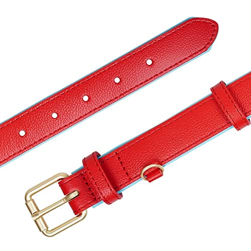 Ohmywor Collare per cani di piccola taglia in pelle per cani di piccola taglia, rosso 1,5 x 35 cm, XS