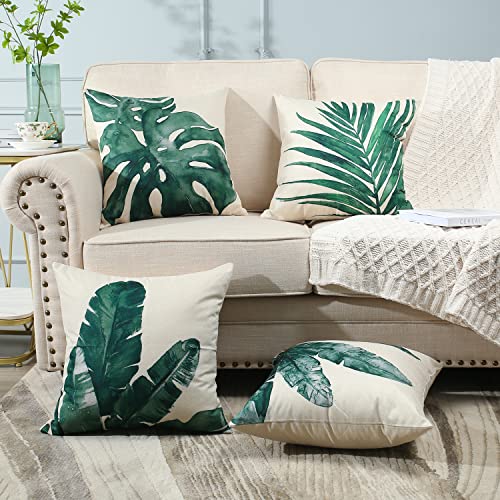 Ohok Confezione da 4 federe decorative morbide e quadrate, 45 x 45 cm, per soggiorno, divano, camera da letto, divano (foglia verde)