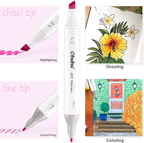 Ohuhu 320 Pennarelli Indelebili a Doppia Punta, Evidenziatori con Borsa da Trasporto per Colorare, Dipinti, Evidenziare e Sottolineare