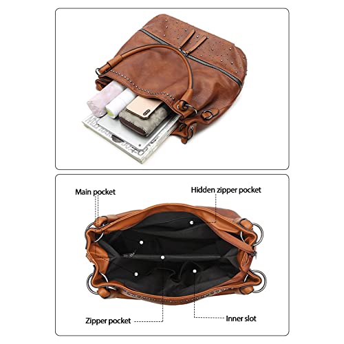 Oichy Borsa Donna Borsetta Pelle PU Borsa Tracolla Top Handle Borsa a Spalla Borse Tote Multiuso (Caffè)