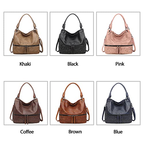 Caratteristica: questa borsa a tracolla con decorazione a rivetto è alla moda e bella, che può abbinarsi a vari abiti e scarpe di stile. Con manico superiore e tracolla lunga staccabile e regolabile, può essere utilizzata come borsa a mano, tote bag, borsa a tracolla, borsa spalla.