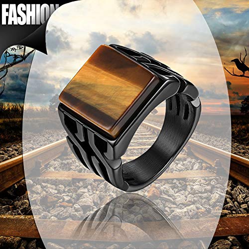 OIDEA Anello in Acciaio Inossidabile e Occhio di Tigre Stile Vintage,Anello Lucido da Uomo Nero Regalo Perfetto
