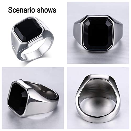 OIDEA Anello Uomo Fidanzamento Promessa Matrimonio Nuziale Acciaio inossidabile Agata liscio Nero Argento,Misura da scelta