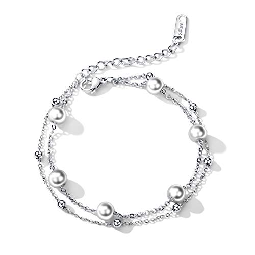♥ Design a iniezione ♥: simbolo di fortuna e amore per sempre. Bracciale da donna di alta qualità in acciaio inox, in combinazione con ciondolo a sfera di perline, misura regolabile, adatto per tutti i giorni