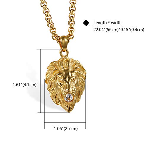 OIDEA Collana Catena Uomo Acciaio Inossidabile Pendente Testa di Leone Mosaico Zircone Rock Punk Oro