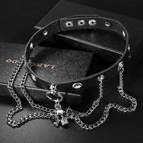 OIDEA Collana Collare in Pelle per Uomo Donna con Catena Cranio Stile Punk Rock Nero Argento Regalo Perfetto