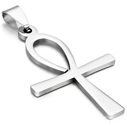 OIDEA - Collana unisex in acciaio inox, a forma di simbolo egizio ankh, con sacchetto regalo, colore: argento
