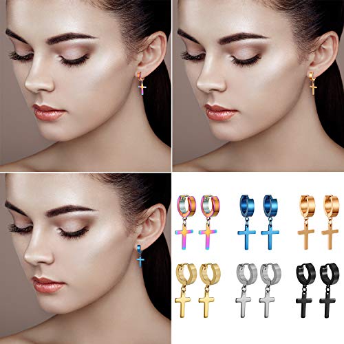 OIDEA [6 Coppie Orecchini da Donna Uomo a Cerchio con Ciondolo a Forma di Croce,Orecchini in Acciaio Inossidabile Tendenza alla Moda Regalo Perfetto