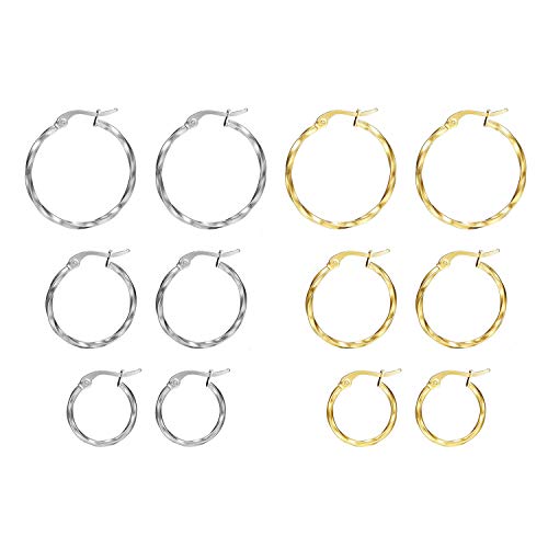 Oidea Set Orecchini a Cerchio Piccoli da Donna in Acciaio Inossidabile Intrecciati Regalo per Amica Amante o Sorella,Colore da scelta[3 coppie]
