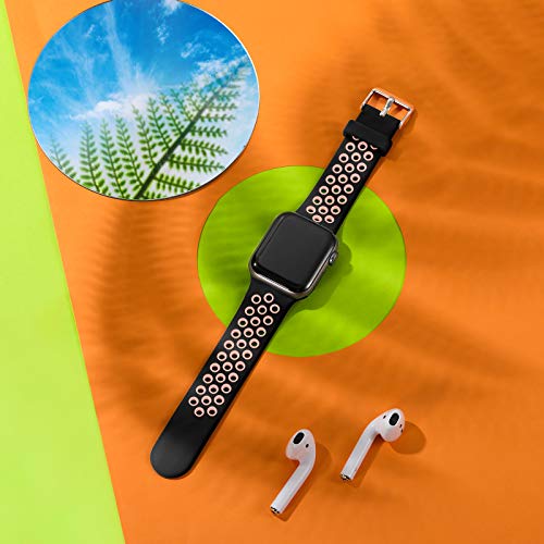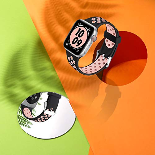 Oielai Cinturino Compatibile con Aple Watch Cinturino 38MM 40MM 42MM 44MM, Sport Silicone Morbido Sostituzione Cinturino per iWatch Serie 6, Serie 3 5 4 SE 2 1, 38MM/40MM S/M Nero/Rosa