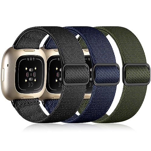 Oielai 3 Pack Compatibile con Fitbit Versa 4 Cinturino/Fitbit Versa 3 Cinturino/Fitbit Sense Cinturino Donna Uomo, Cinturino Sportivo in Nylon Elastico per Versa 4/Versa 3 /Sense
