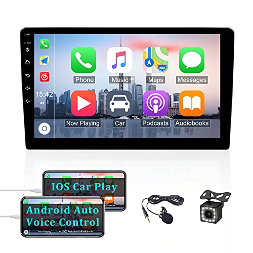 OiLiehu Double Din Autoradio per Car Play, 9 pollici 2.5D HD Touch Screen Support Mirror Link per Android/iOS, Bluetooth FM Radio AUX/SWC Subwoofer + 12 luci Backup Camera