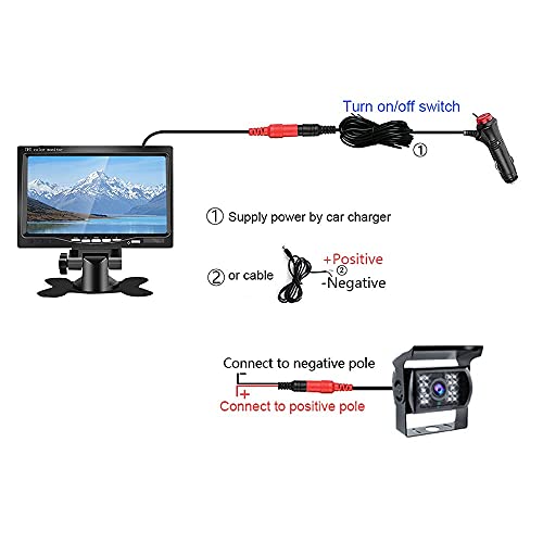 【Facile da installare e utilizzare】 Collegare il cavo di alimentazione alla fotocamera e al monitor, collegare il filo rosso al polo positivo e il filo nero al polo negativo. Può essere utilizzato dopo l'accensione. Il monitor e la telecamera utilizzano materiali di alta qualità, garantiscono un uso a lungo termine, una facile installazione e non richiedono l'uso di un elettricista.
