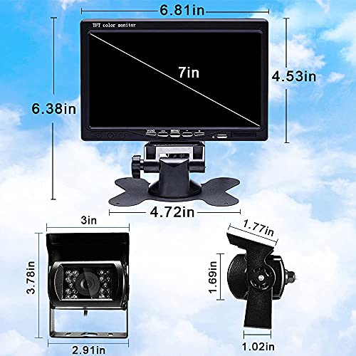OiLiehu Sistema di Telecamera di Retromarcia, Telecamera di Retromarcia a Infrarossi 18LED impermeabile + Monitor di retromarcia da 7 pollici + cavo da 65 piedi, adatto per Camion, Camper, Furgoni