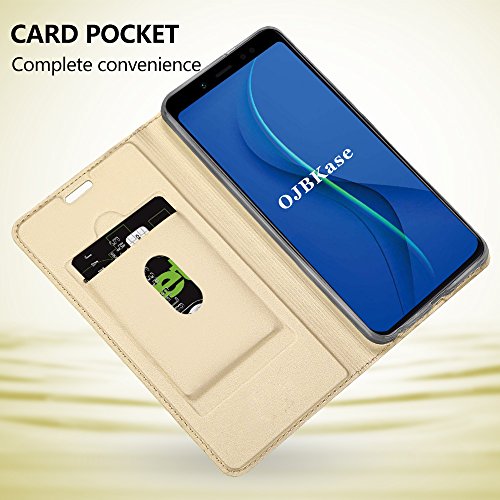 OJBKase Cover Xiaomi Redmi Note 5 PRO, Flip Caso Custodia in Pelle PU di Alta qualità Premium Portafoglio con Interno TPU Antiurto e Protettiva Flip Wallet Cover per Xiaomi Redmi Note 5 PRO (Oro)