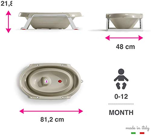 Grazie alle sue dimensioni contenute, può essere utilizzata nel piatto doccia, appoggiata nella vasca per adulti o su qualsiasi piano stabile. Misure d'ingombro massimo della vaschetta aperta: b cm 48 X h cm 21,8 X p cm 81,2.