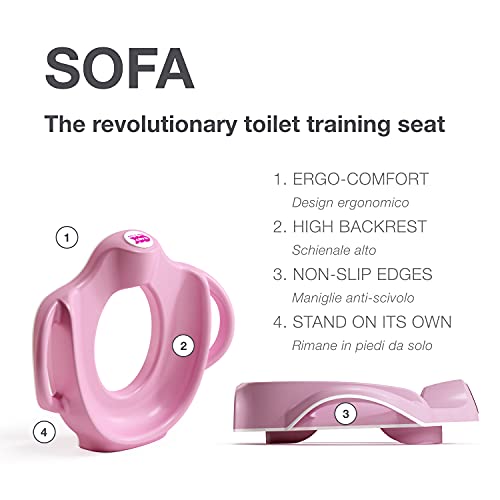 OKBABY Sofa - Riduttore per WC con Bordo Antiscivolo - Schienale Alto per Massimo Comfort e Ampie Maniglie per Massima Stabilità del Bambino - Rosa