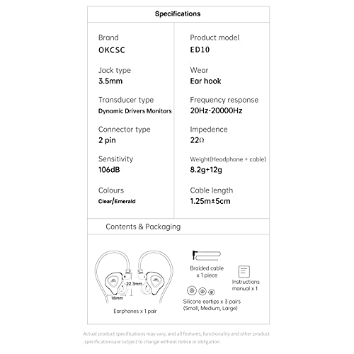 OKCSC ED10 Cuffie auricolari con monitor Monitor auricolari rumore cancellazione di alta qualità del suono pesante basso cavo staccabile per telefono Computer Tablet 3.5mm con Mic verde