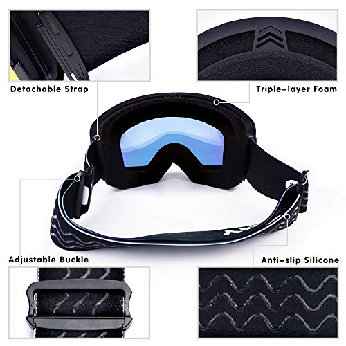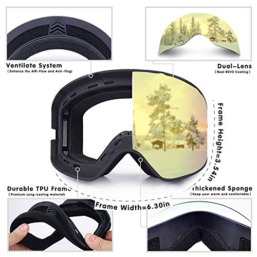 OKELAY Occhiali da Sci Lente Staccabile Doppio Strato Anti-Nebbia Anti-Vento 100% Protezione UV400, Telaio Curvabile, Schiuma 2 Strati (Oro)