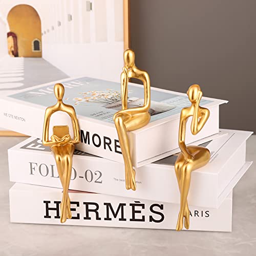 OKESYO Denker Scultura oro, 3 pezzi, statuetta astratta pensatore, statuetta in resina, decorazione moderna, scultura astratta, decorazione per soggiorno, camera da letto, ufficio, desktop