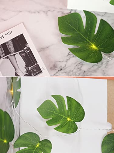 OKLIJ Catena Luminosa Di Artificiale Foglie Di Palma Tropicale|Luce Decorativa Per Foglie Finte Monstera|Luci Di Fata Con Foglie Verdi Finte|Luce Per Piante Simulazione-1.5M(4.9FT)-10LED_BATTERIA