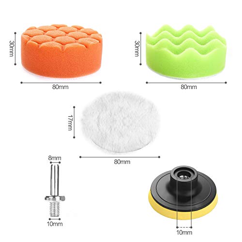 OKZEST - Spugna per lucidatura auto, 22 pezzi, con tampone di lucidatura per trapano, set di lucidatura da 3 pollici e lana per lucidatura auto, kit per lucidatrice M10, adattatore per trapano