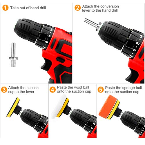 ▲ Applicazione: utilizzato per tutti i tipi di vernici per rivestimento, cera, lucidatura e sigillatura, per pulire e migliorare la sua leggerezza. Migliora la superficie in modo uniforme e migliora i segni dei graffi superficiali. Adatto per qualsiasi trapano M10 tradizionale, trapano avvitatore a batteria, lucidatrice e tornio.