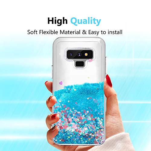 OKZone Cover Galaxy Note 9 [con Pellicola Proteggi Schermo], 3D Glitter Liquido TPU Cover,Brillantini Fluttuante Quicksand Scintillio Bling Protettiva Custodia per Samsung Galaxy Note 9 (Cuore Blu)