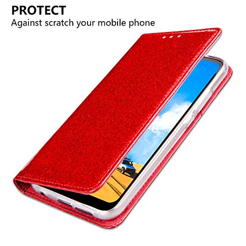 OKZone Cover Huawei P20 Lite, Custodia Lucciante con Brillantini Glitters Design Flip Caso Custodia in Pelle PU Portafoglio con Interno TPU Protettiva Cover per Huawei P20 Lite (Rosso)