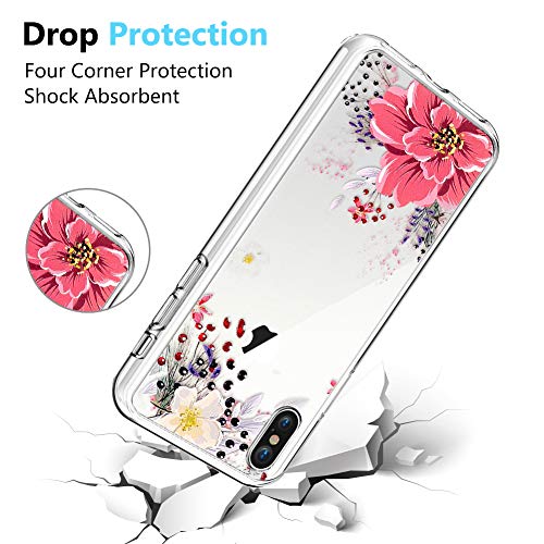 OKZone Cover iPhone XS Max [con Pellicola Proteggi Schermo], Custodia con Motivo Fiori, Stampa Floral Flessibile Morbida di TPU Silikon Cover Posteriore Protezione Caso per Apple iPhone XS Max (Rosa)