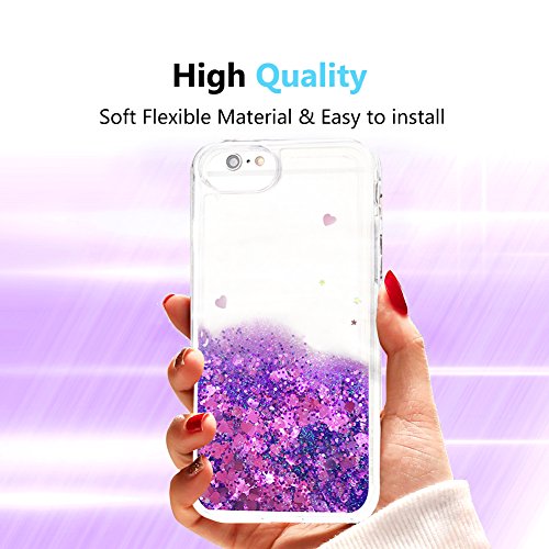 OKZone Cover iPhone 6S Plus/iPhone 6 Plus [con Pellicola Proteggi Schermo], 3D Glitter Liquido TPU Cover,Brillantini Quicksand Protettiva Custodia per Apple iPhone 6S Plus/iPhone 6 Plus (Cuore Viola)