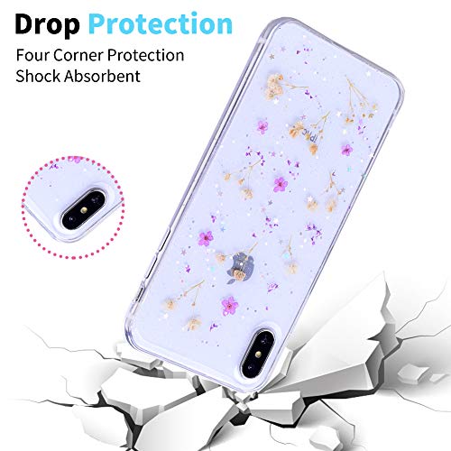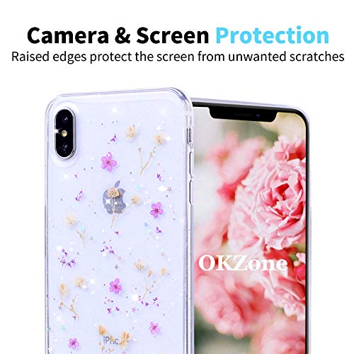 OKZone Cover iPhone XS Max (6,5 Pollici) [con Pellicola Proteggi Schermo], [Fiori Secchi] Custodia a Fiori Secco Cristallo Gel Custodia Ultra Sottile Cover Morbido Cover Case (Viola)