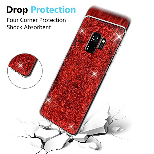 OKZone Cover Samsung Galaxy S9, Custodia Lucciante con Brillantini Glitters Ultra Sottile Designer Case Cover per Samsung Galaxy S9 (Rosso)